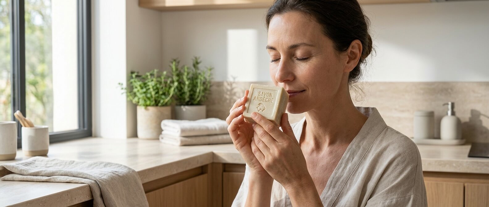 Nos savons sont fabriqués en Ardèche avec 30 % de lait de chèvre frais biologique — zéro odeur animale, garanti.