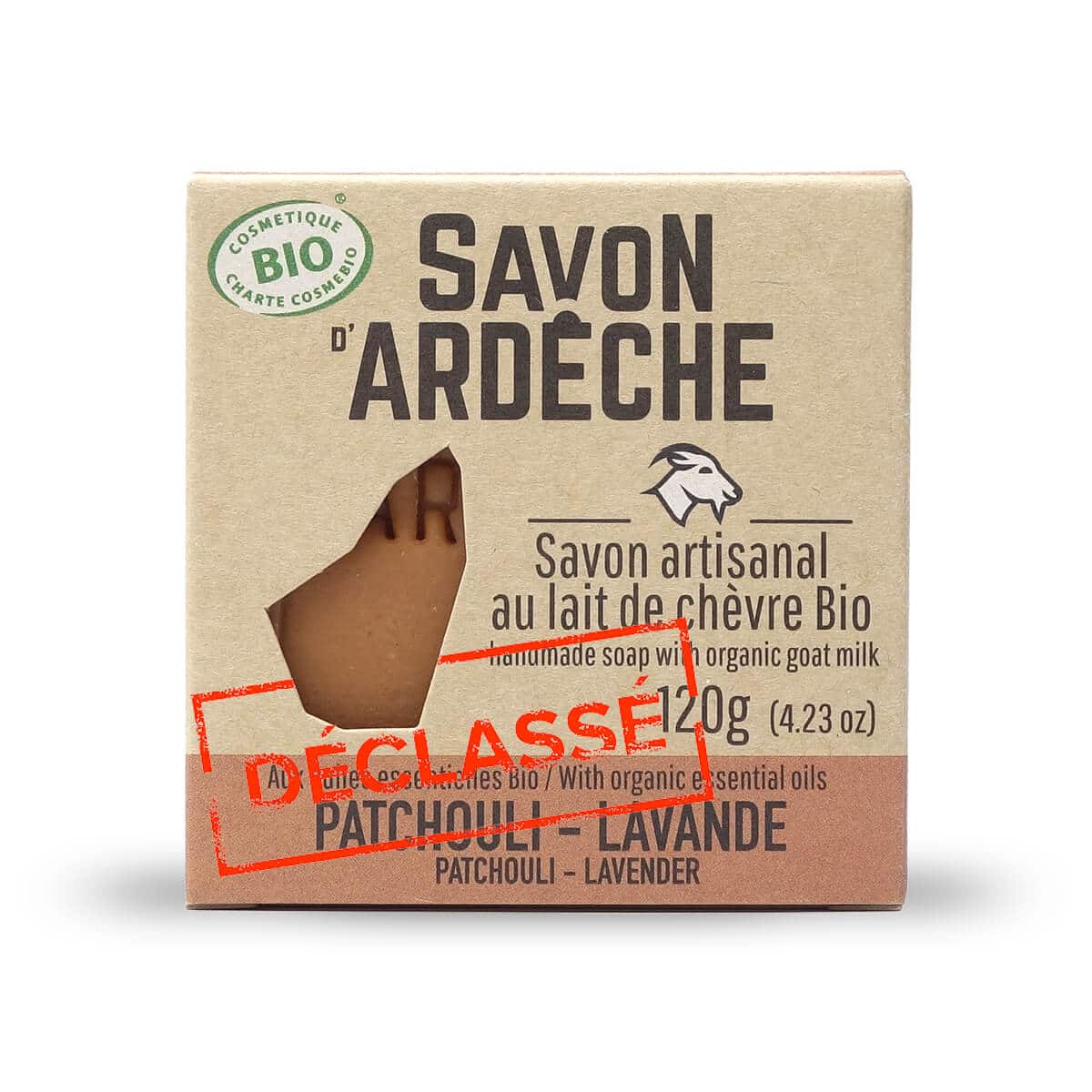 Caractéristiques particulières : Savon carré estampillé « Savon d’Ardèche » avec une tête de chèvre